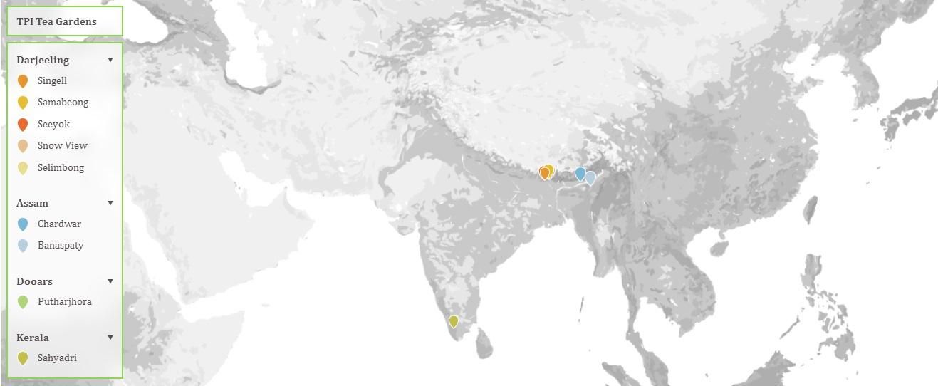 TPI cultivate high quality leaf teas, silver tips, black teas, greens teas, oolong teas, flavoured teas, decaffeinated teas, chai teas and handmade speciality teas over nine tea gardens — the map below shows the tea garden locations.